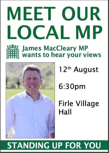 In a rare opportunity, our MP James Macleary is visiting Firle on the Tuesday 12th August.